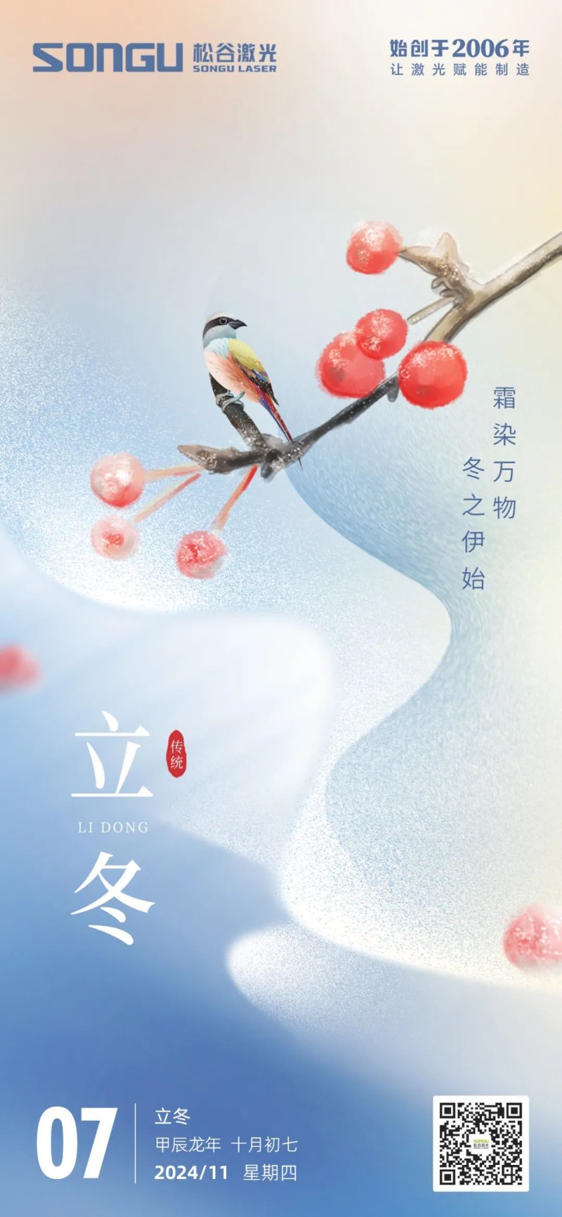冬至陽回,萬物復(fù)蘇,愿松谷激光科技與您一同迎接新的一年,共創(chuàng)更加輝煌的未來。愿我們的合作如同冬至的團(tuán)圓,緊密而長久,讓激光科技的光芒照亮每一個(gè)夢想的角落。