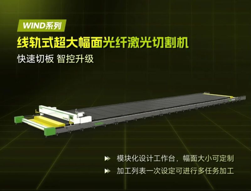 WIND系列線軌式超大幅面光纖激光切割機,高度智能化的操控系統,精工鍛造的完美細節,多項自主研發的技術創新,全方位彰顯領跑型激光切割重器的強大氣場。用超高性能、超高效率、超高產能,演繹激光科技強勢賦能金屬加工產業的最強音。頻繁出口韓國、日本、美國等高端市場,在船舶制造、重型工業、機械制造等高端領域推動工業經濟蓬勃發展。