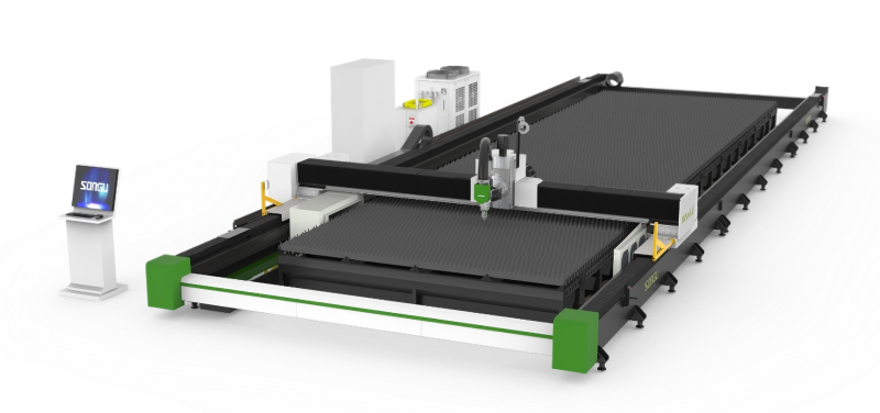 高精度伺服電機驅動,動態性能好,航空鋁輕量化橫梁,控制和定位精準雙層對拉式交換工作臺,交換頻次高,雙溫雙控冷水系統,冷卻力度大,柏楚智控系統,可一人看護多機。