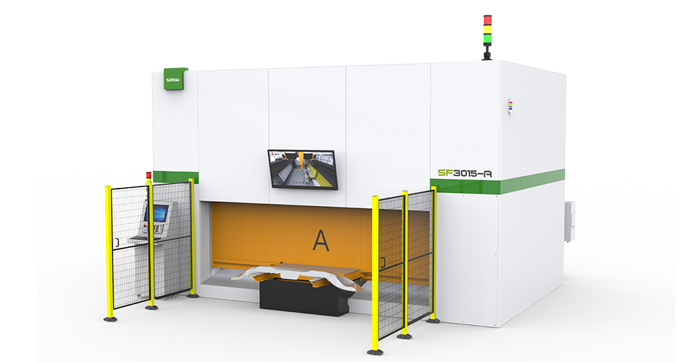 松谷激光科技SF系列三維五軸光纖激光切割機,輕量化高強度鑄鋁橫梁,動態性能好,響應速度快,定位精準;高端 5軸聯動數控系統,智慧大腦,高柔性,高精度,穩定性好,全封閉式設計,配置門禁系統等安全防護功能,確保安全生產適用于汽車熱成型零部件、3D 金屬成型件、曲面件,異形管材等加工領域。