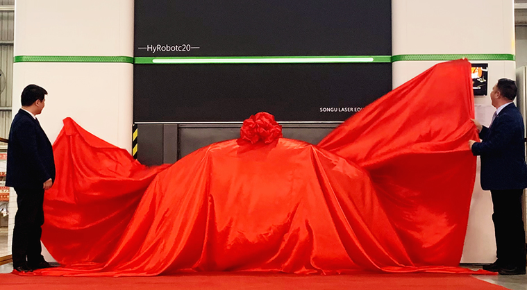 2019年3月26日,蘇州松谷智能裝備股份有限公司(以下簡稱“松谷激光”)“HyRobot C20三維光纖激光切割機器人量產下線儀式”在蘇州松谷總裝基地隆重舉行。廣東大族粵銘激光集團執行董事兼總經理、蘇州松谷智能裝備股份有限公司董事長卓勁松先生,蘇州松谷激光裝備股份有限公司副總經理李正上先生,蘇州松谷激光裝備股份有限公司生產總監鄭五一先生出席剪彩儀式并給首臺銷往歐洲市場的“HyRobot C20三維光纖激光切割機器人”揭開了神秘的面紗。