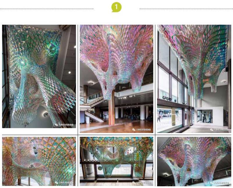 這組名為Ventricle的古怪形態的裝置被布置在倫敦的Southbank中心的Festival of Love節上,具體而言,這其實是張巨大的網,分為兩部分結構,由大量激光切割的鋁合金小單元組成。SOFTlab工作室設計的這組作品被布置在大樓前側最吸引眼球的位置,陽光在裝置的反射折射下被分解為極為絢爛的色彩,十分美麗動人!