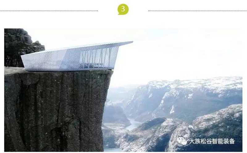 【移動餐廳】,是意大利人Park Associati設計的,采用激光切割鋁合金材料,大小約有50㎡,能很好融入周圍的景色。