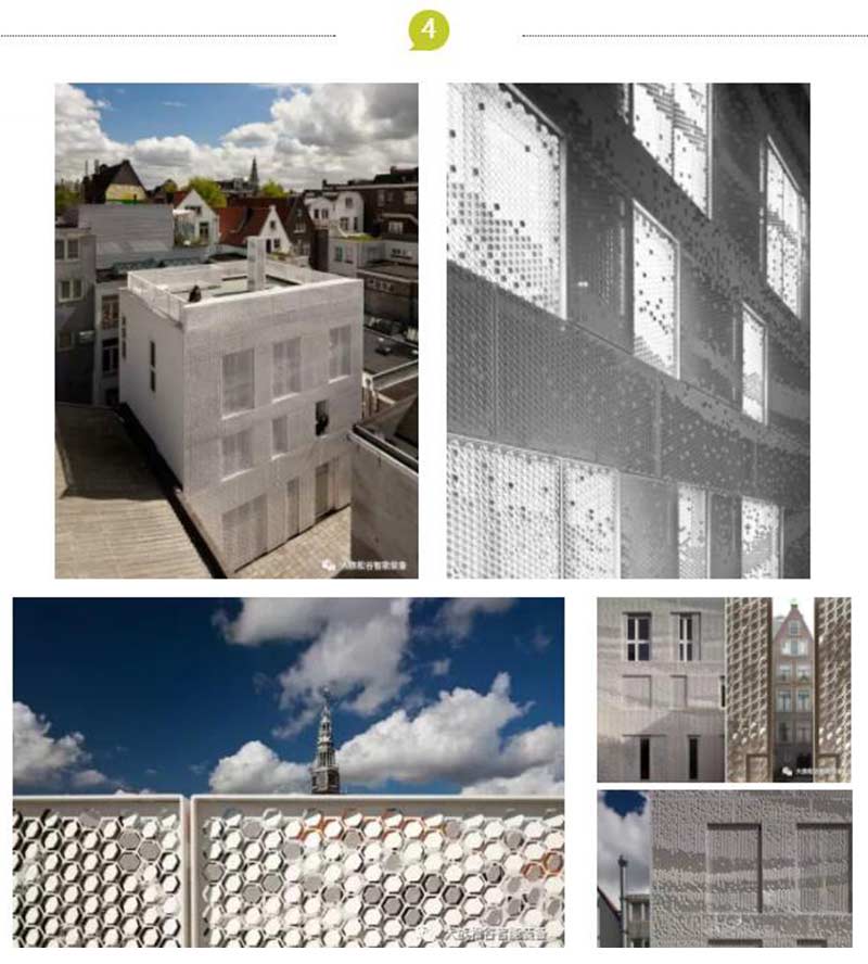 這座白色的房子披著一身純潔無暇白色表皮,簡潔隱晦的白色外皮里面是色彩絢麗的住家環境,建筑師Abbink X De Haas architectures將藝術和建筑修復極其絕妙的結合白色表皮占據建筑四面,外色白表皮是激光切割的六邊形網格鋁合金穿孔板,其如同錦緞一般覆蓋著房子。