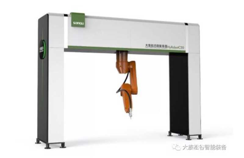 采用高精度Staubli工業機器人,全鋁合金手臂,重量輕;獨特的吊裝配重裝置,保證任何姿態下的運行精度。配置龍門式吊掛安裝,工作范圍大,裝卸區接近性好,可以加工大型鈑金成型件;搭配全包圍的外防護裝置,采用安全聯鎖設計,有效隔離加工區,避免激光的輻射傷害,安全性高。